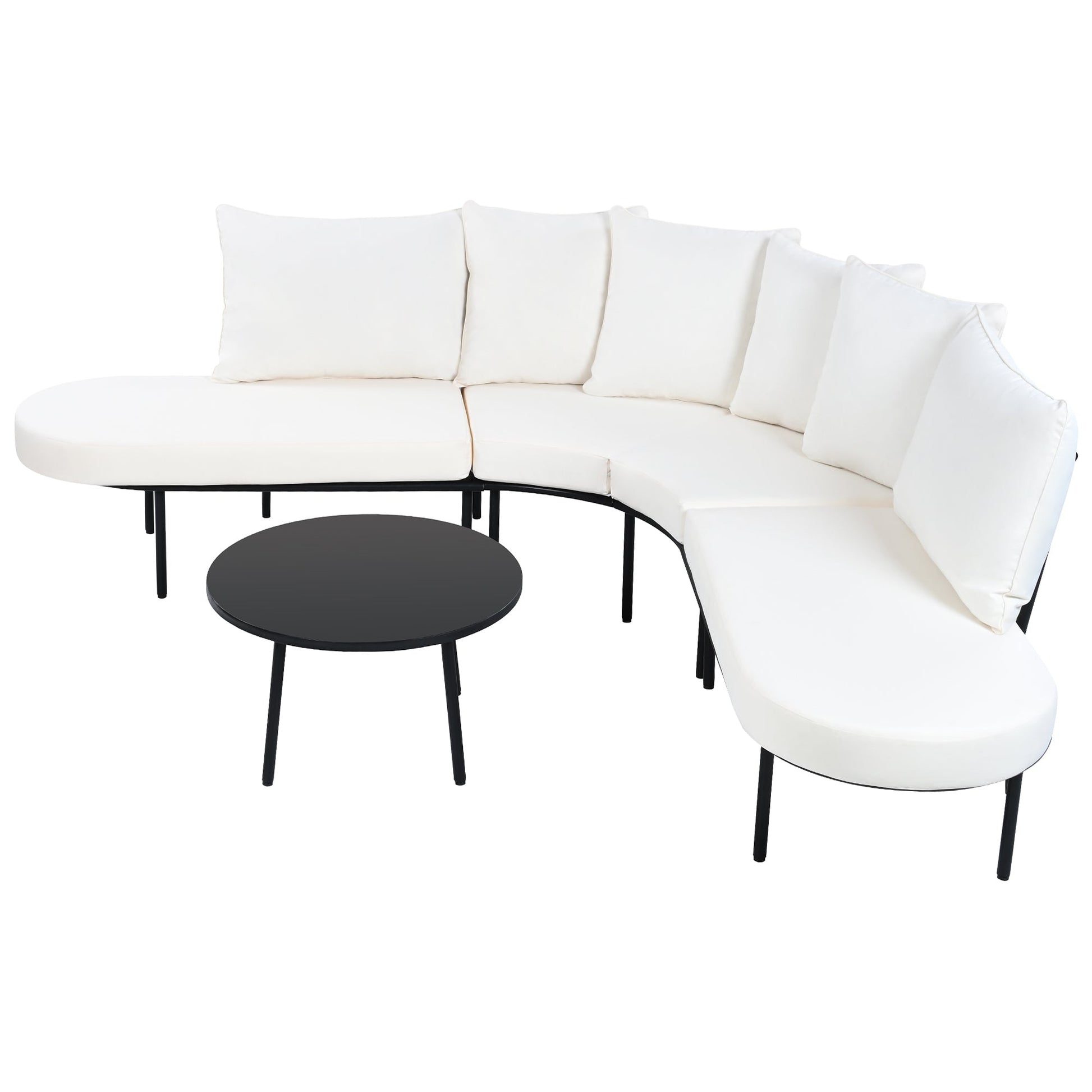 Patio Half- Moon Curved Outdoor Furniture Sofa Set with Coffee Table,